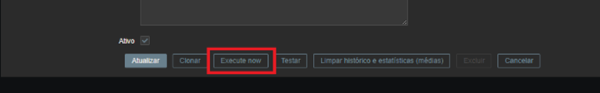 • Role a página das configurações do item até o botãoExecute now e realize a ação, conforme a imagem abaixo: